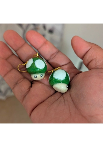 1-Up Mario Mushroom Earrings – Handmade Polymer Clay | Gamer Jewelry