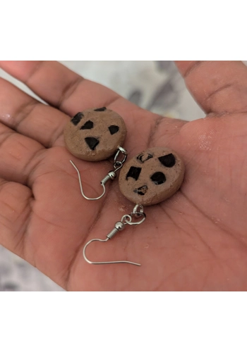 These handmade chocolate chip cookie earrings are crafted with love from polymer clay to look just like freshly baked cookies! Detailed with realistic chocolate chips and a glossy finish, these earrings capture the charm of everyone's favorite treat. Whether you're a cookie lover, dessert enthusiast, or fan of kawaii accessories, these earrings will add a sweet touch to any outfit! Lightweight and fun, they're perfect for casual wear or as a unique gift for someone special.