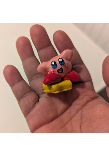 Bring the magic of Dream Land to your collection with this handmade Kirby figure standing on a star! Carefully sculpted from high-quality polymer clay, this adorable figure captures Kirby’s iconic cheerful expression as he rides across the stars. Hand-painted with vibrant, game-accurate colors and sealed with a glossy UV resin finish, this piece is both durable and beautifully detailed—perfect for display on your desk, shelf, or gaming setup!