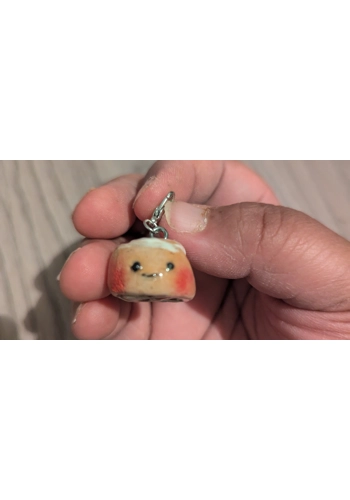 This handmade miniature cinnamon roll charm is crafted from polymer clay and features a realistic cinnamon swirl, topped with a glossy layer of icing. The charming details and warm, inviting colors make it a perfect addition to your jewelry or keychain collection! Whether you're a fan of baked goods, kawaii accessories, or cute, food-inspired charms, this cinnamon roll will melt your heart. Attach it to a necklace, bracelet, or keychain for a tasty and whimsical touch wherever you go!